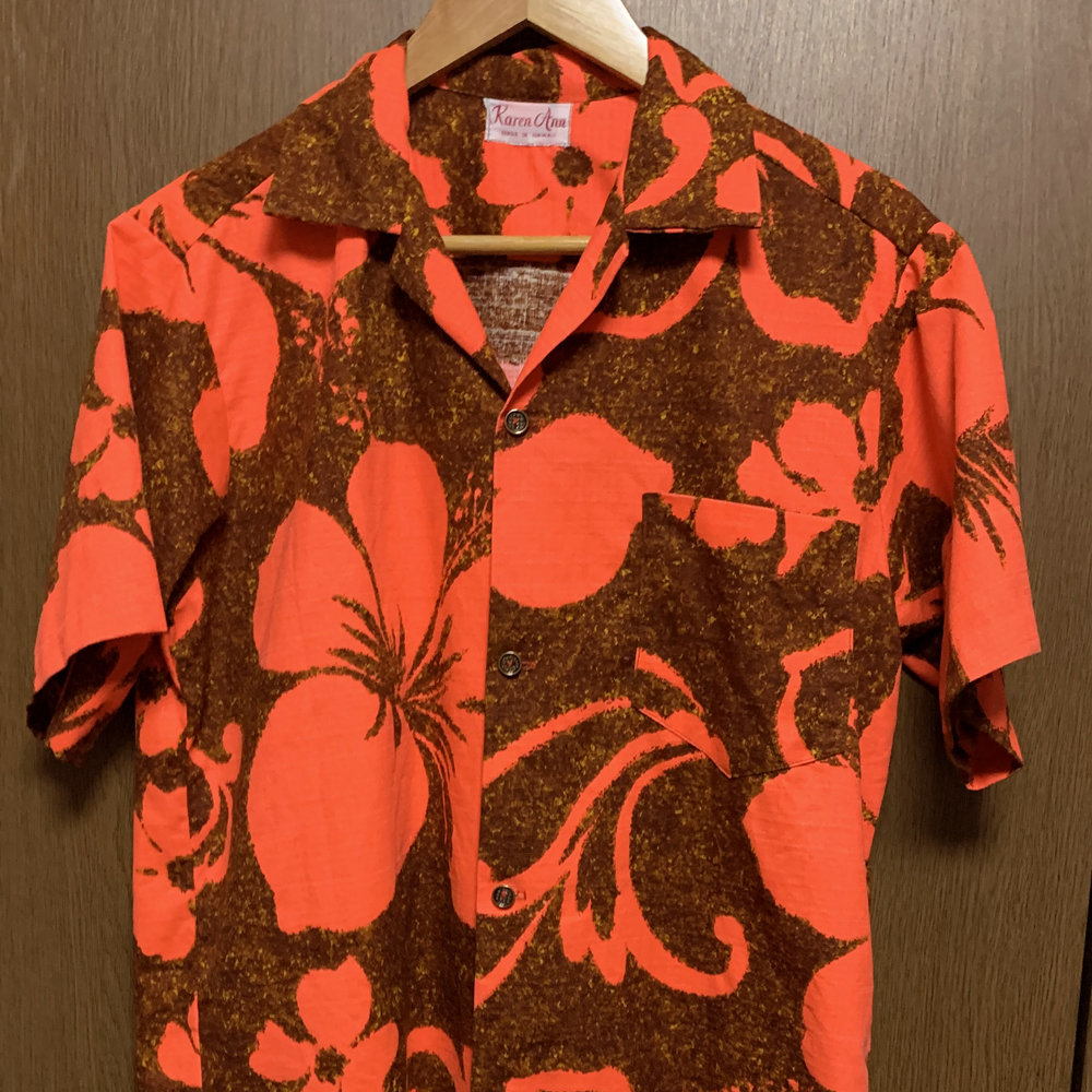 > M位【Karen Ann|アロハシャツ Hawaii】カレンアン オレンジ系 花柄 アロハシャツ オープンカラー USA製 ハワイ ヴィンテージ