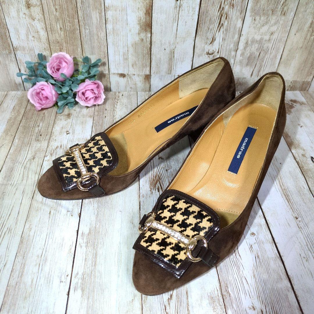 - 【madras】千鳥格子☆パンプス☆ビジュー☆22.5cm☆スエード☆マドラス☆レディース靴