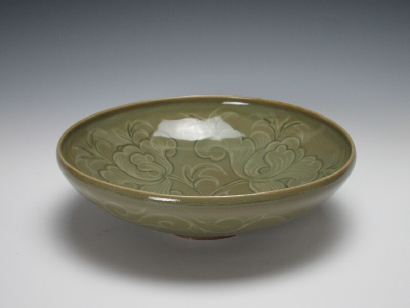 - 倣高麗青磁 象嵌牡丹文七寸鉢(菓子鉢)