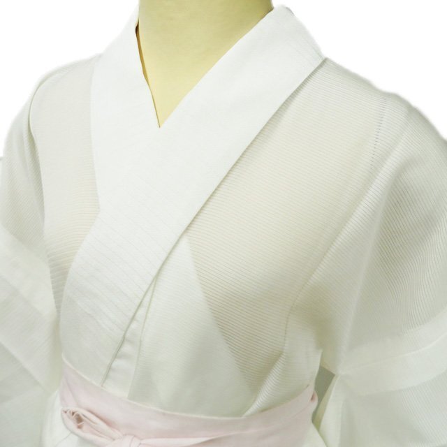 - 夏物 襦袢 中古 正絹 絽 反端付き オフホワイト きもの北條 A1240-1