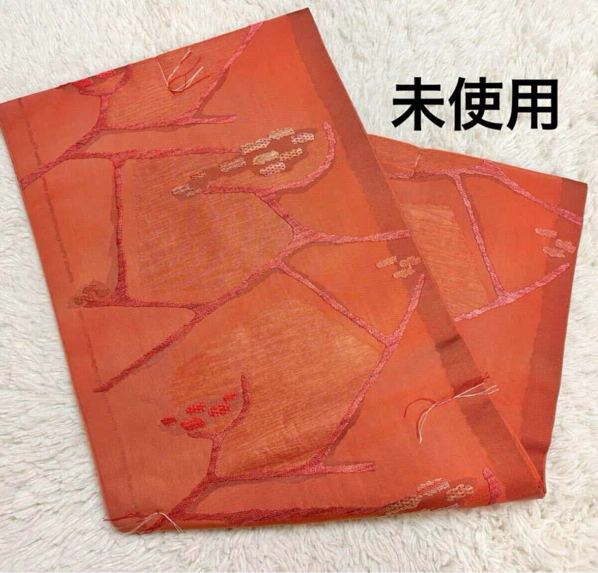 > 未使用◇袋帯 桜風抽象模様◇サーモンピンク◇セミフォーマル・おしゃれ着に