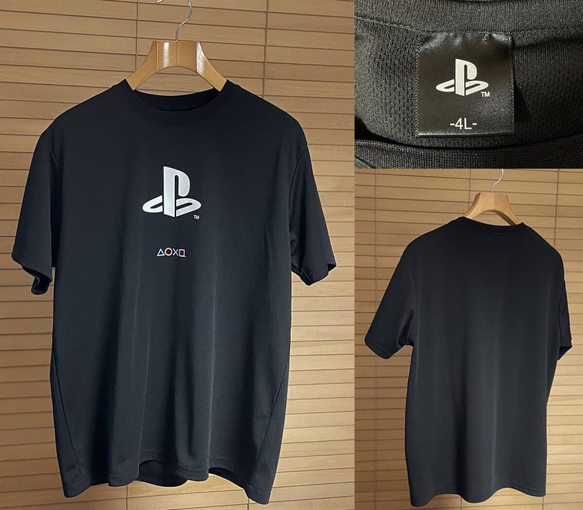 - 【必見です。激安1点のみ 大き目 4L】プレイステーション プレステ ロゴ ポリエステル 半袖 Tシャツ 4L ブラック Z5335WR