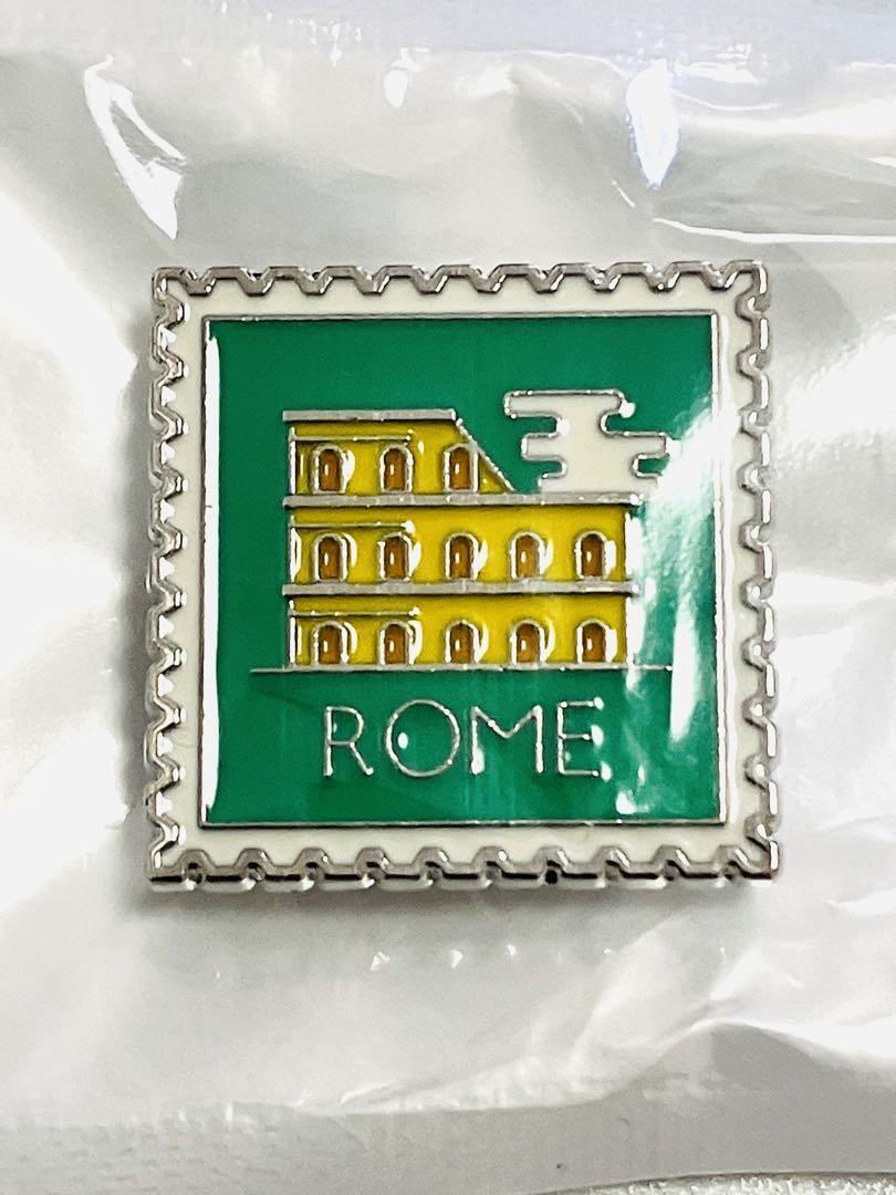 - 新品 送無★☆ピンバッジ 切手風 イタリア ローマ コロッセオ☆★カワイイ オシャレ 海外 外国 ピンバッチ ピンバッヂ 切手
