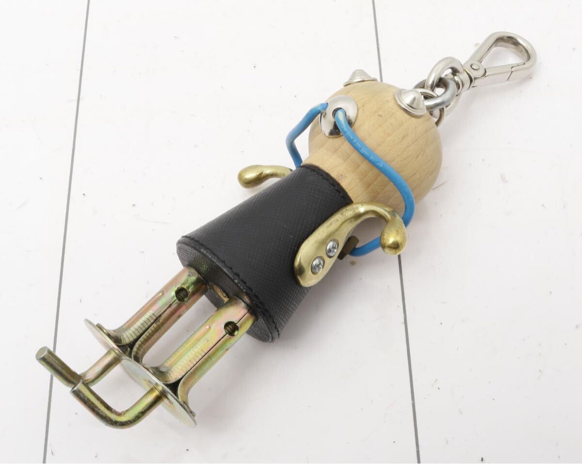 - プラダ PRADA サフィアーノレザー ウッド ロボット キーホルダー 美品