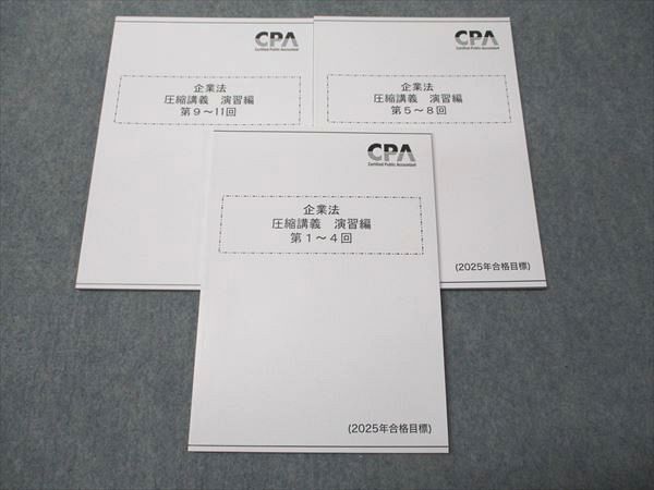 - CPA会計学院 公認会計士講座 企業法 圧縮講義 演習編 第1~11回 2025年合格目標 状態良い 計3冊 019S4D
