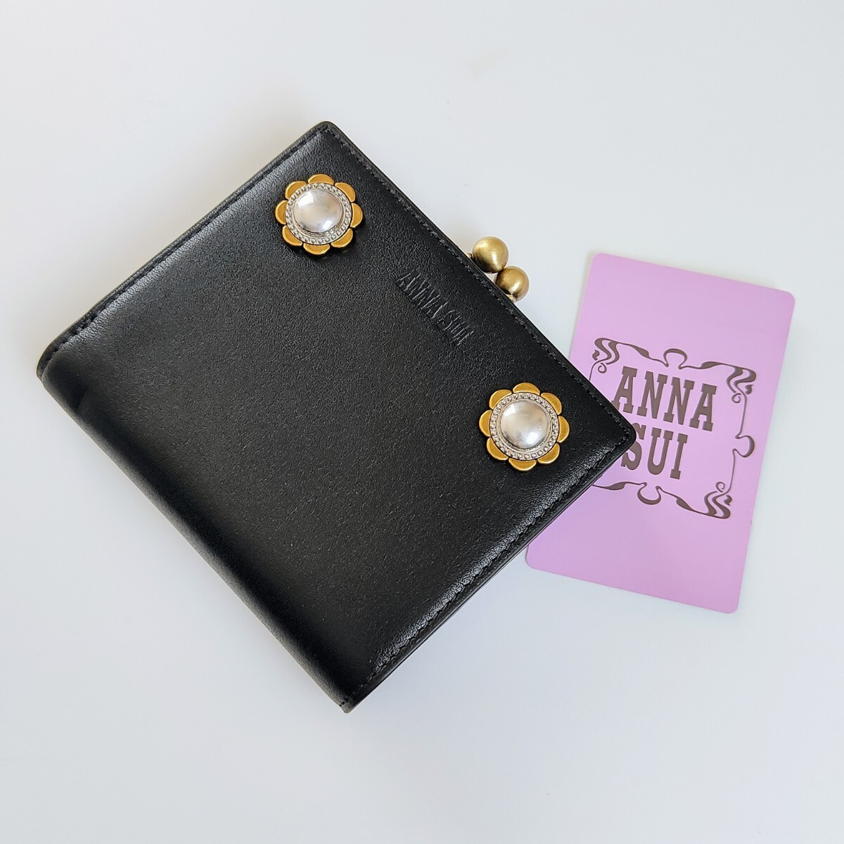 - 新品 未使用 アナスイ ANNA SUI ヴィンテージボタン ガマ口 2つ折り財布 ブラック 黒 二つ折り レザー ウォレット 小銭入れ