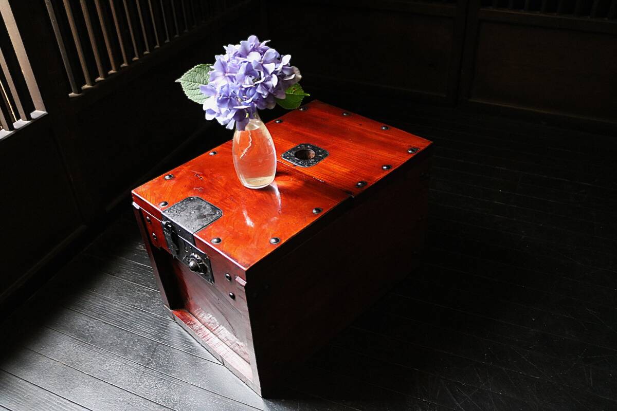 - 【伊董】C101.古民藝!アンティーク!総欅!古い銭函山形県庄内地方総欅銭箱明治太鼓鋲千両箱金庫 #貯金箱 #古道具 #古民藝