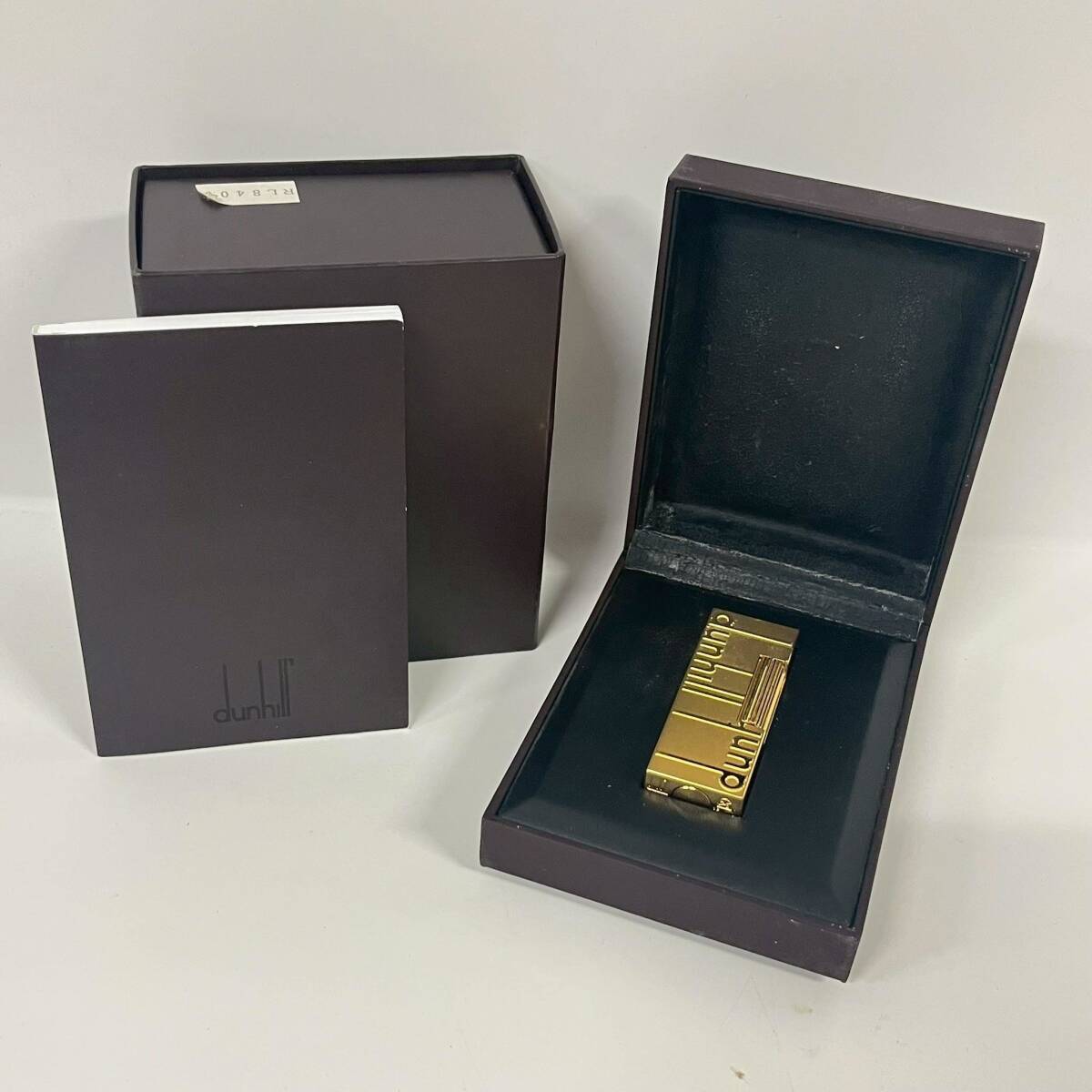 - 1円~【着火未確認】ダンヒル dunhill ロゴ ガスライター ゴールド スクエア ローラー 喫煙具 煙草道具 タバコグッズ 付属品あり K130163