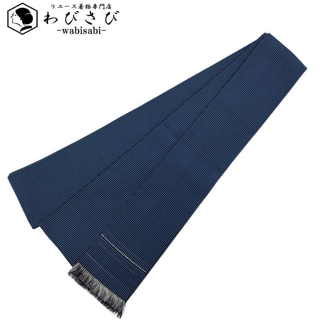 鉄紺色と白糸の縦横の雰囲気の良い織模様の素敵なデザインのお品でございます。