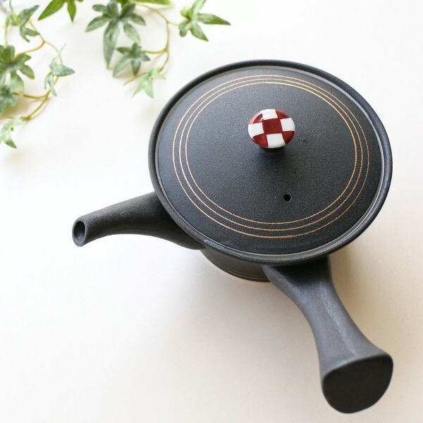 - 急須 おしゃれ 陶器 磁器 焼物 洗いやすい 日本製 きゅうす 有田焼 食洗機対応 黒マット市松金線 急須 送料無料(一部地域除く) msg6393