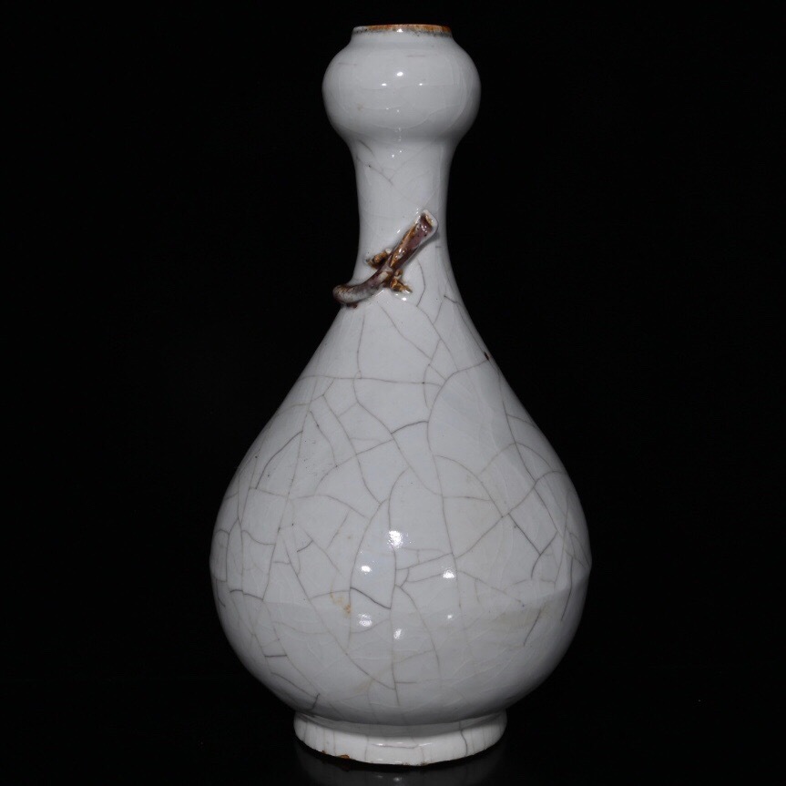 > 蔵友旧蔵出 元 甜白釉 開片 盤龍蒜頭瓶 稀少珍品 貴重品 古陶瓷品 置物 古賞物 中国古玩 中国古美術品