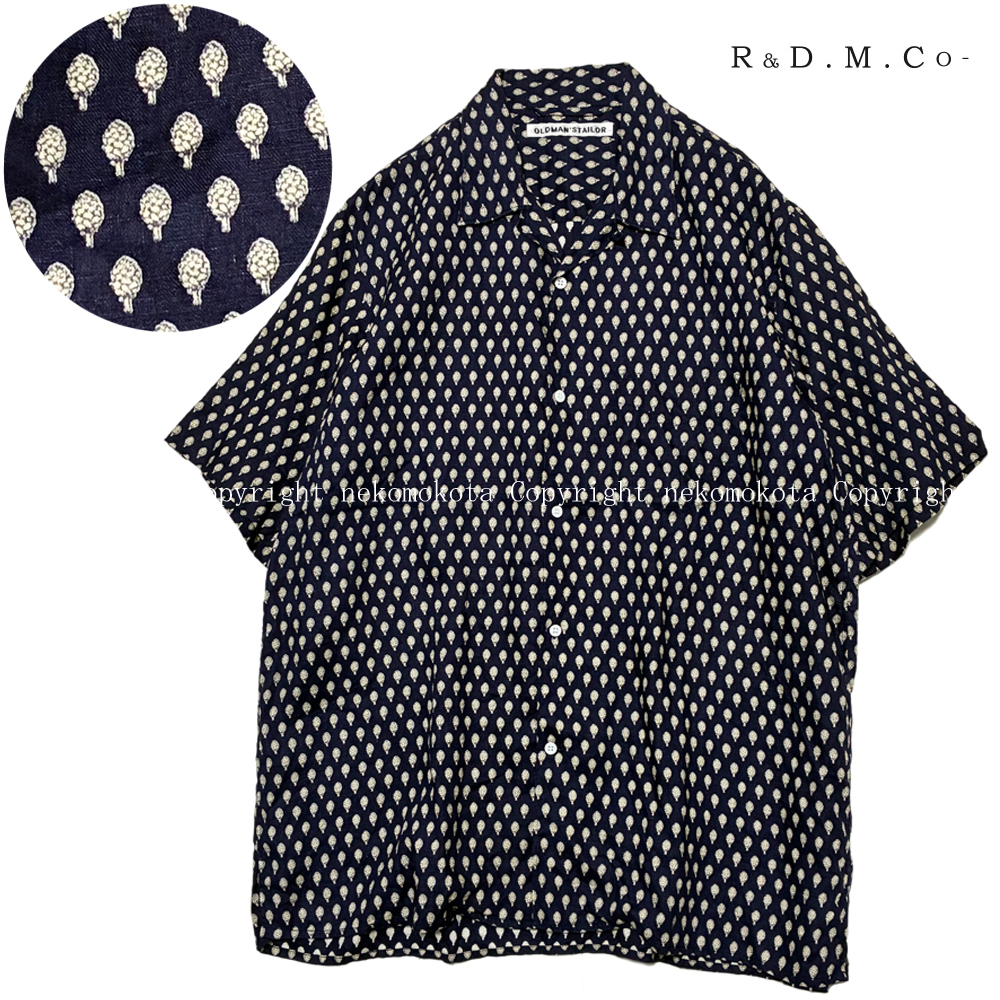 > 美品 オールドマンズテーラー アーティチョーク柄 リネン オープンカラー 半袖 シャツ 38 ネイビー 麻 メンズ レディース ユニセックス