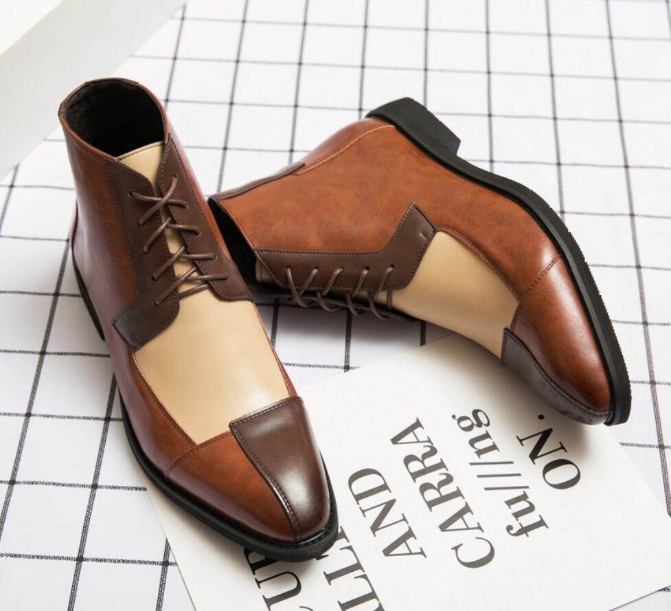 - 新品*メンズシューズ 配色 切替シューズ ショートブーツ ビジネスシューズ メンズ 外羽根 革靴 38-46サイズ選ぶ * コーヒー