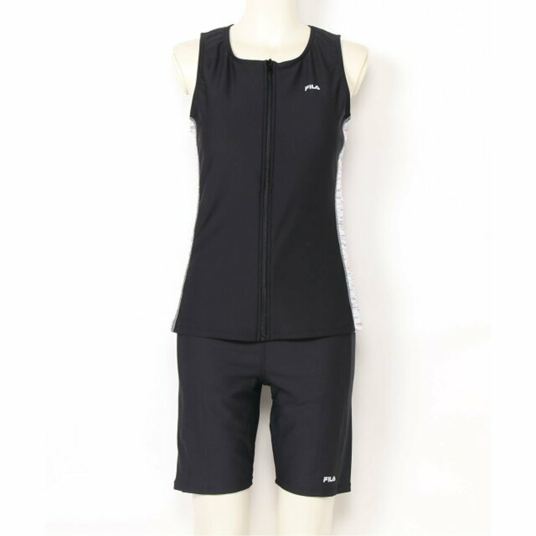 > 13号 XLサイズ 新品 FILA セパレーツ フィットネス水着 黒×白 めくれ防止 レディース フルジップ タンキニ水着 315619 スポーツ水着