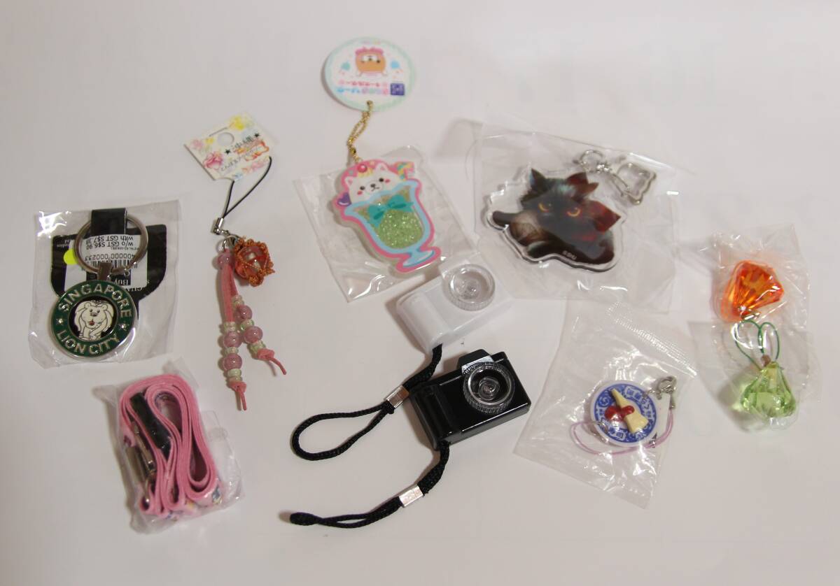 - ストラップ キーホルダー セット まとめ 豆しば三兄弟 きらめきソーダ SHU 猫 アクリルキーホルダー 沖縄 トンボ玉 シンガポール くら寿司