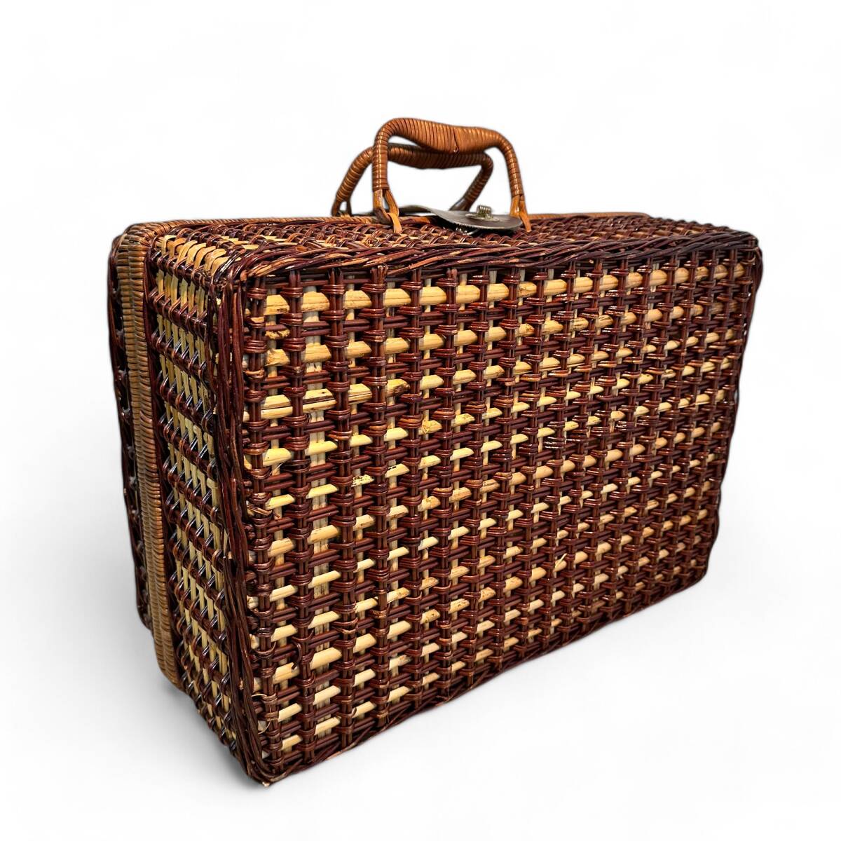 - K2410-2 ヴィンテージ ピクニックバスケット かごバッグ ラタン 網籠 トランク型 籐 ナチュラルインテリア