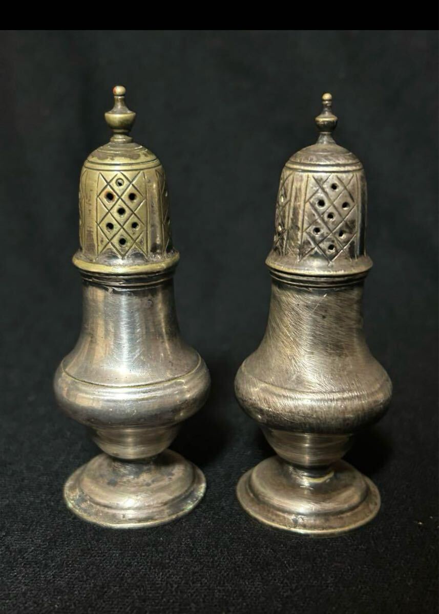 - ヴィンテージアンティークシルバーソルト & ペッパーシェーカー