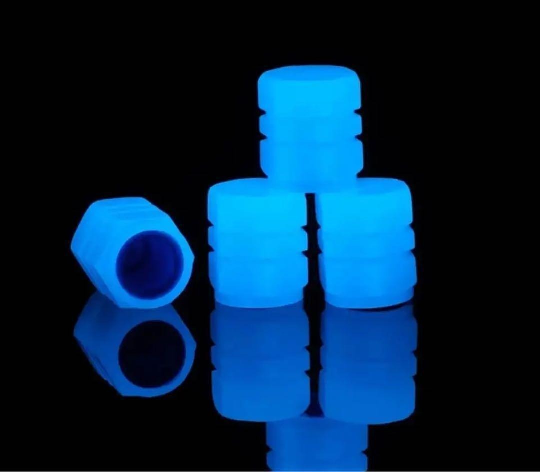 - 4個セット タイヤエアキャップ 蓄光 エアバルブ 車 蛍光ブルー 青