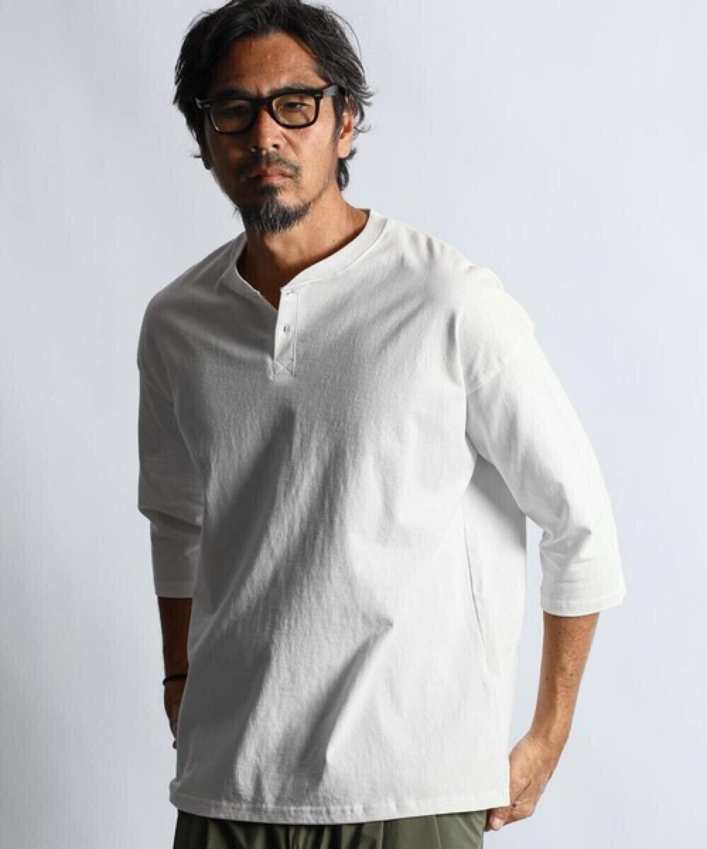 - The DUFFER of ST.GEORGE 8oz HEAVY WEIGHT 3QUATER HENLEY TEE:ヘビーウェイト オーバーサイズ 7分袖 ヘンリーTシャツ 白 L