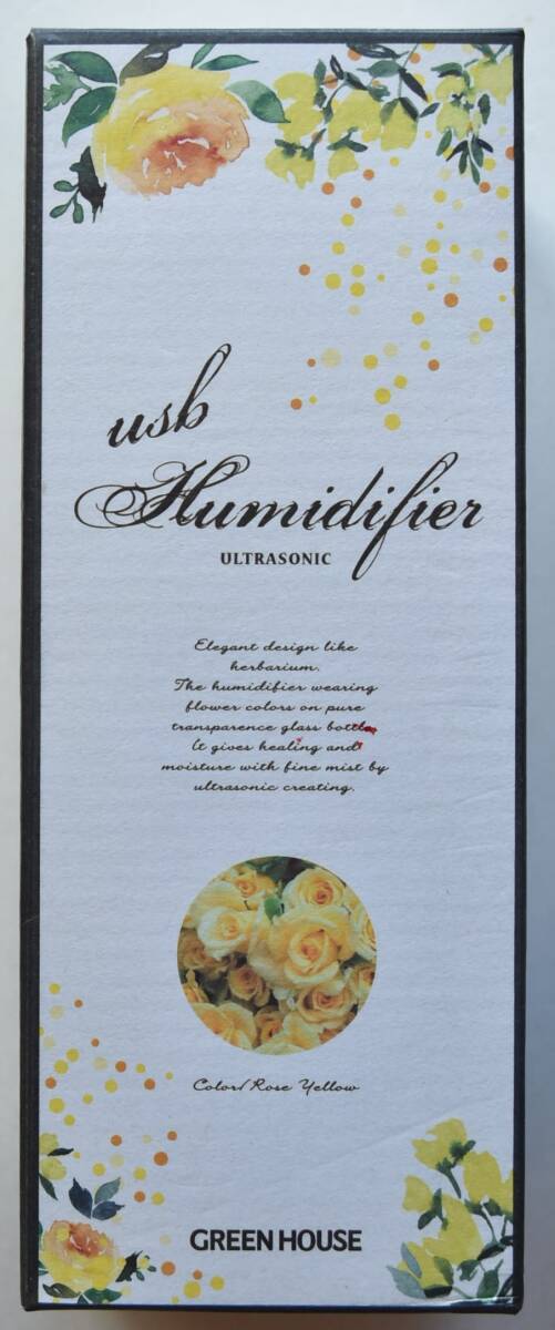 > GREEN HOUSE ハーバリウムUSB加湿器 GH-UMSGA-YL ローズイエロー 未開封新品 加湿器 卓上加湿器