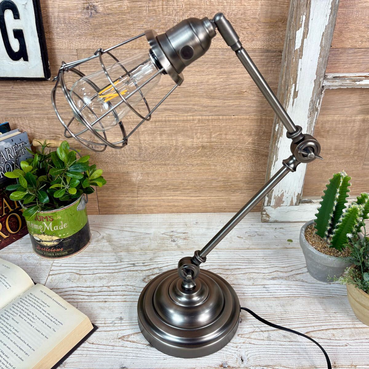 - 送料無料、インダストリアル電気ライトスタンド②、卓上デスクランプ、シルバー、照明、アンティーク、ビンテージ風、LED電球対応