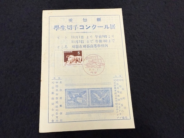 - 48、愛知県 学生切手コンクール展 昭和27年 第7回国民体育大会 レスリング