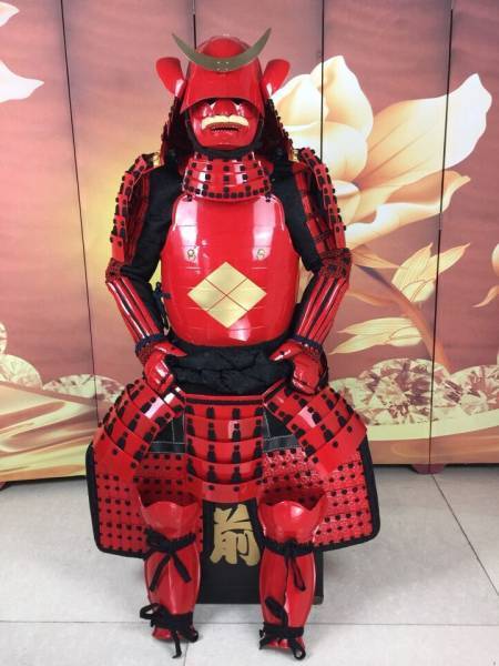 - ●送料無料 大SALE 未使用●着用 ●手作り●等身大 黒糸威二枚胴具足 櫃付き 等身大手造り 赤 高級品
