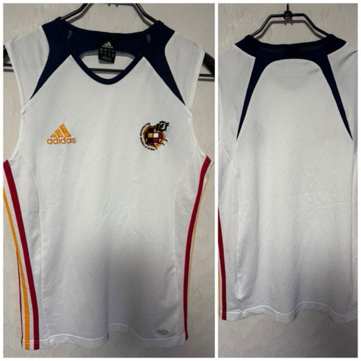 > スペイン代表 トレーニングシャツ ノースリーブ S Mサイズ adidas 白ホワイト アディダス タンクトップ