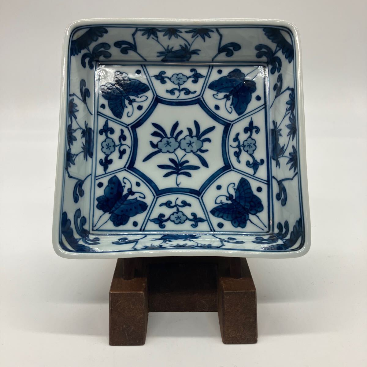- 有田焼 源右衛門窯 古染付 花蝶割角鉢 盛皿 盛鉢 角皿 和食器 古美術