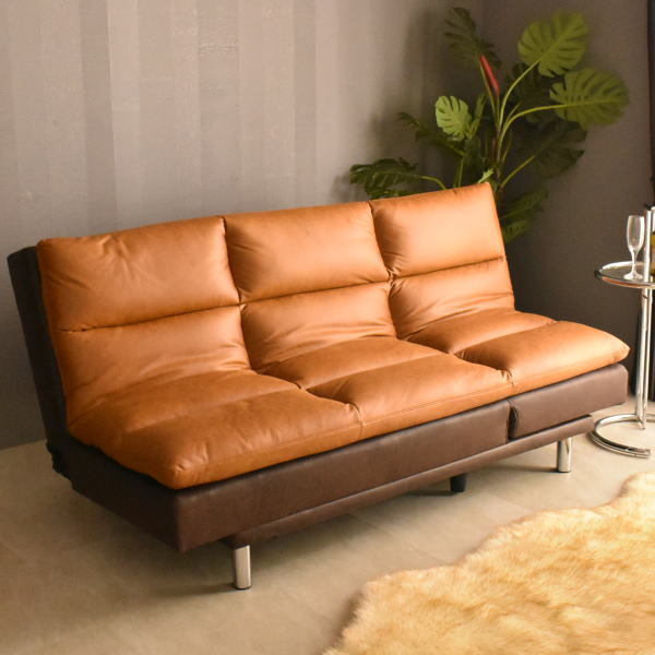 新素材ファブリック張り3WAYリクライニングソファーベッド キャメル