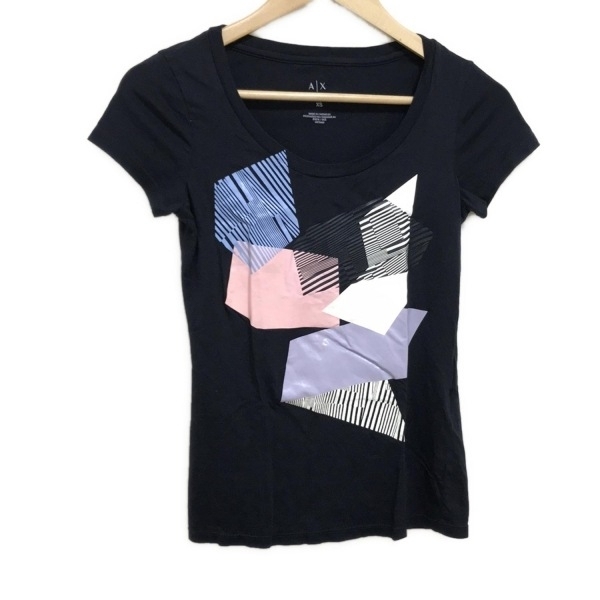 - アルマーニエクスチェンジ ARMANIEX 半袖Tシャツ サイズX S - 黒×ライトパープル×マルチ レディース トップス