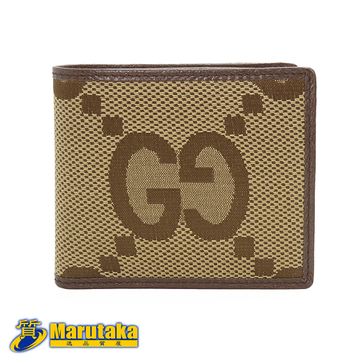 - 【未使用 グッチ】2つ折り札入れ ジャンボGG キャンバス メンズ コンパクトウォレット 小銭入れなし ブラウン GUCCI 中古 25k223-2