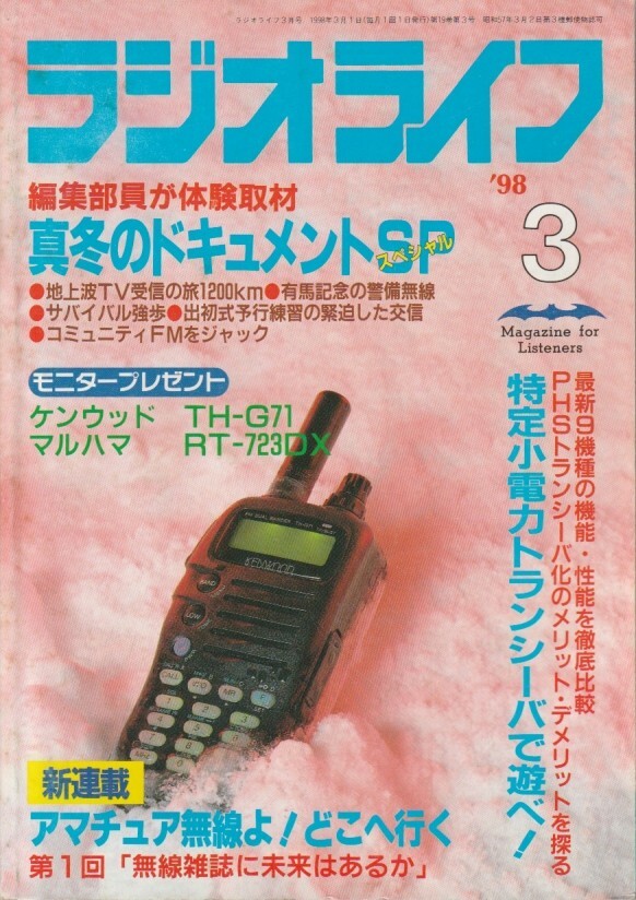 > ラジオライフ 1998年03月号(付録ステッカー付)/野辺山太陽電波観測所/特小トランシーバベストバイ/有馬記念警備無線/PR-1001/RT-723DX