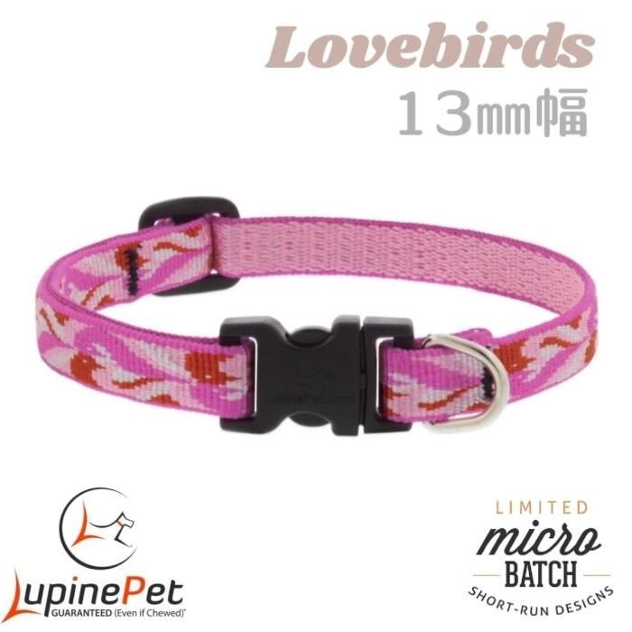 - ラブバード柄 小型犬向けワンタッチ首輪 13mm幅 XSサイズ 15-22cm LUPINE アメリカ製 軽量 丈夫 ルパイン