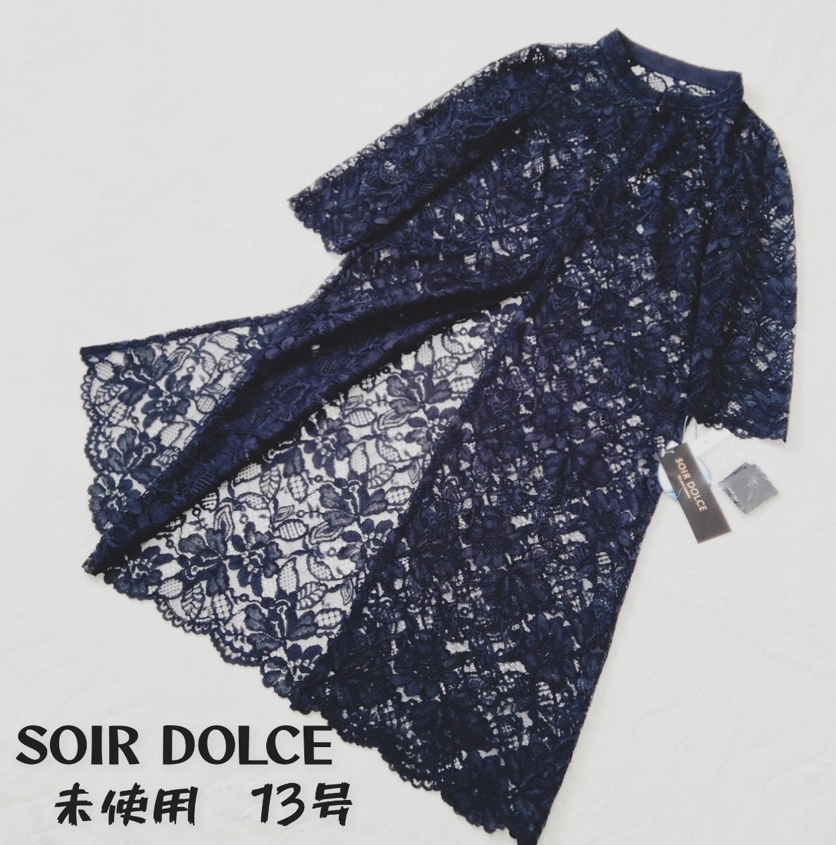 > 未使用*SOIR DOLCE ソワールドルチェ*大きいサイズ13号*総レース羽織*東京ソワール*濃紺*ネイビー*ロングカーディガン*フォーマル