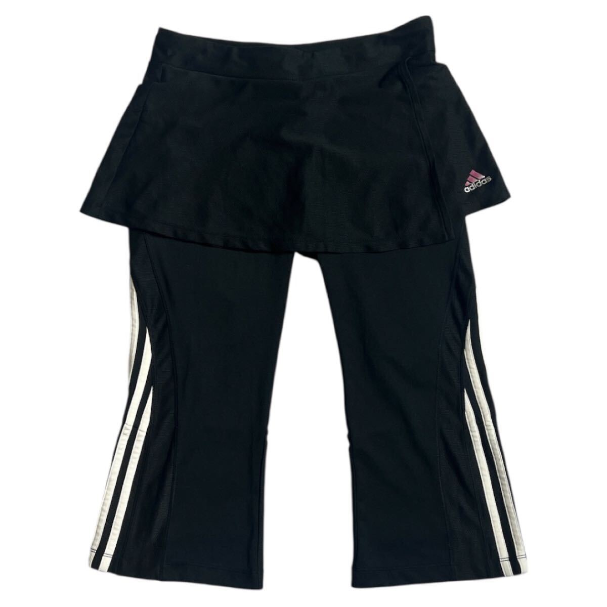 - 送料無料 ■ adidas アディダス ■ CLIMACOOL パフォーマンス ロゴ プリント ジャージ クロップド スカート付 パンツ ブラック M