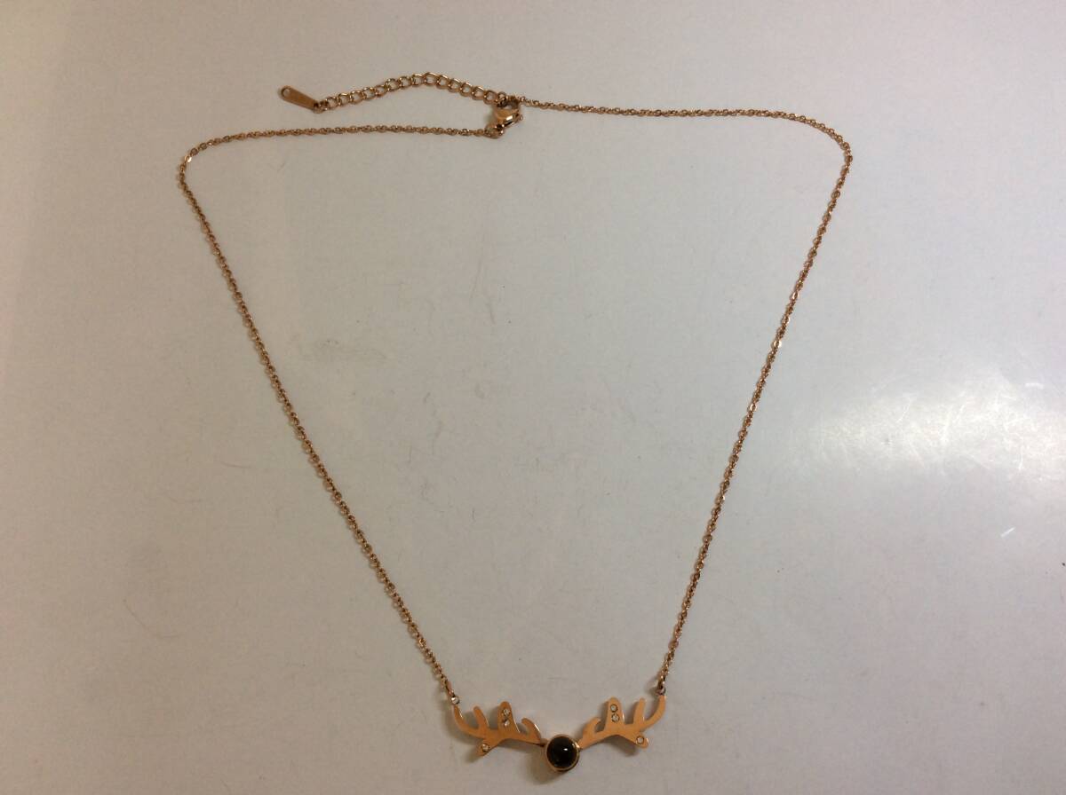 - A-44-8 ユニークな鹿モチーフ ゴールド ネックレス 石付き S・Steel刻印