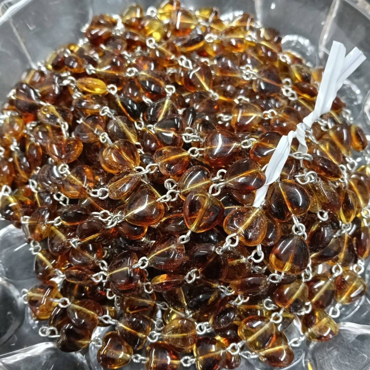 - ☆未使用 大量 ガラスビーズ ハート ビーズチェーン 約332g 10×9mm ブラウン ヴィンテージ パーツ アクセ ネックレス イヤリング S-472