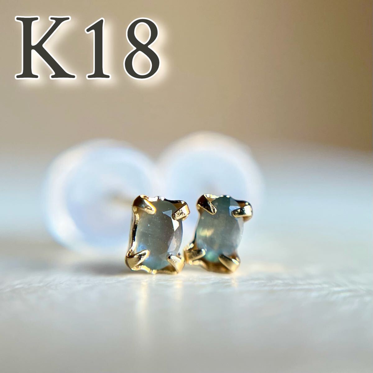 - K18 天然石アレキサンドライト ピアス oval 希少 レア カラーストーン 18金 4