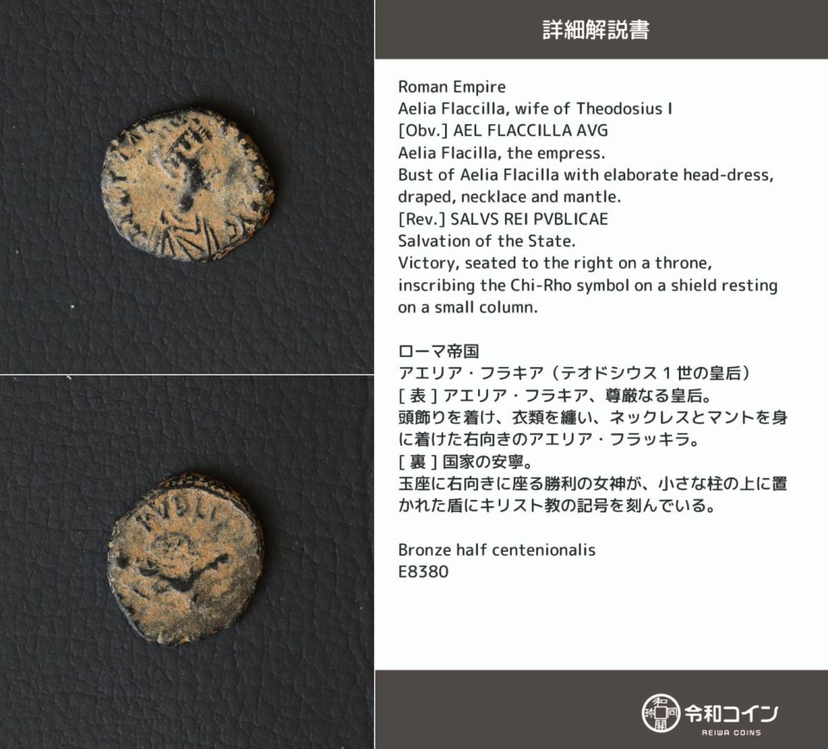 - *[令]アエリア・フラキア(テオドシウス1世の皇后) センテニオナリス銅貨【詳細説明カード付】古代ローマコイン[E8380]7o5