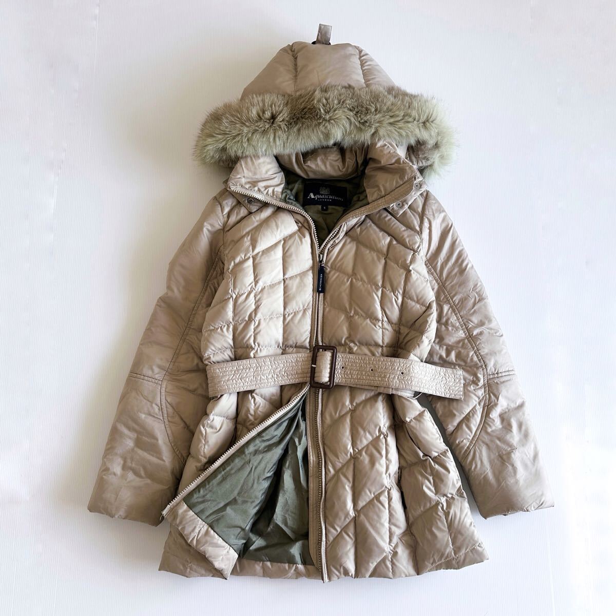 > ★【希少】Aquascutum アクアスキュータム / S キルティング ダウン ロング コート ベージュ ベルト付 アウター