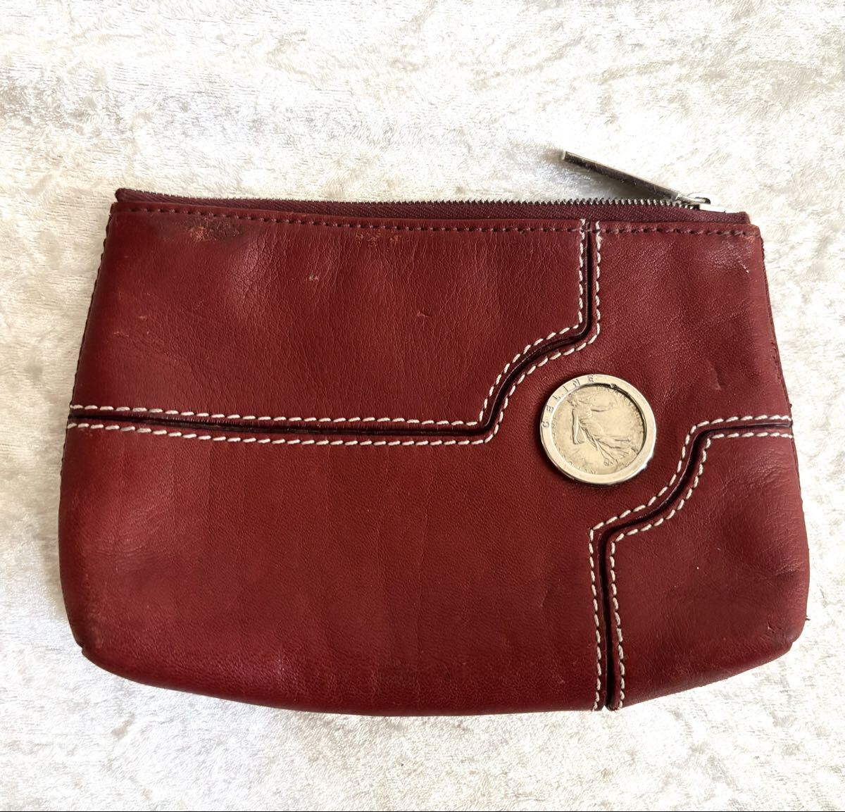 - セリーヌ 本革ポーチ ボルドー 小物入れ 小銭入れ コインケース CELINE