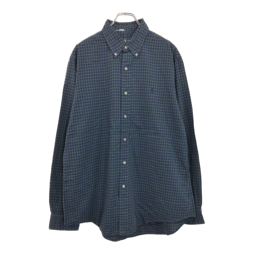 > RALPH LAUREN ラルフローレン ボタンダウン 長袖シャツ チェック ネイビー(メンズ L)中古 古着 U8604