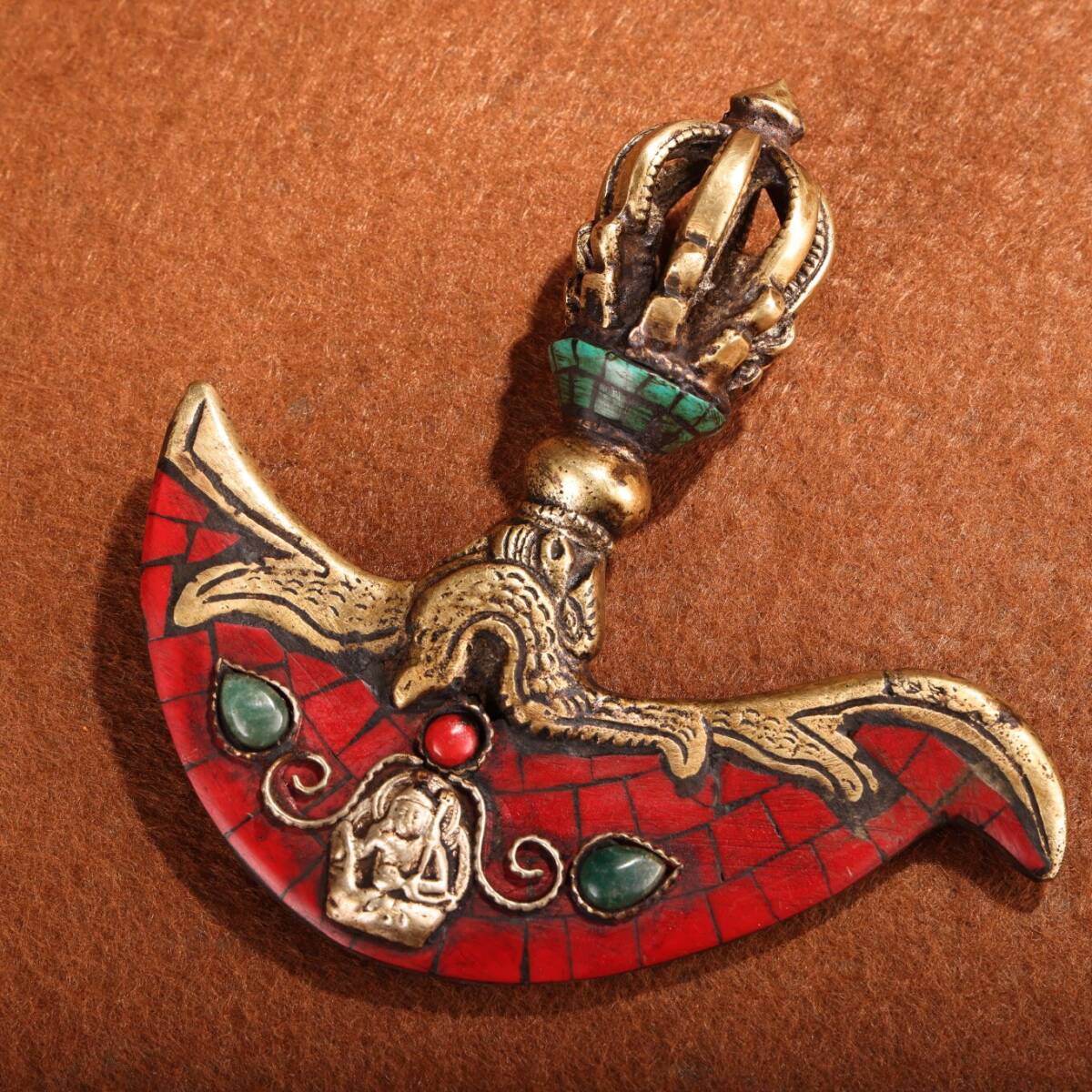- 蔵友旧蔵出 銅製 寶石嵌 藏傳多節金剛降魔斧 希少珍品 貴重品 置物 古賞物 密宗密教 供養品 仏教美術品
