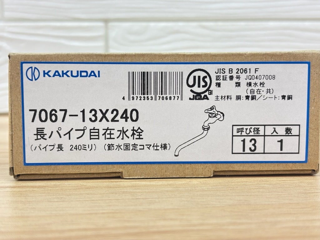 > A7 KAKUDAI カクダイ 長パイプ自在水栓 7067-13X240 パイプ長 240ミリ 節水固定コマ仕様 呼び径13 未使用品 水道栓 蛇口 水栓