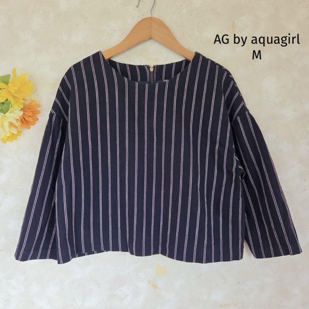 - エージーバイアクアガール ブラウス M 七分袖 ストライプ バックジップ