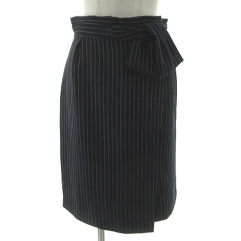 - ミッシュマッシュ MISCH MASCH スカート ストレート タック リボン ミディ丈 スリット ストライプ ネイビー 紺 ホワイト 白 38