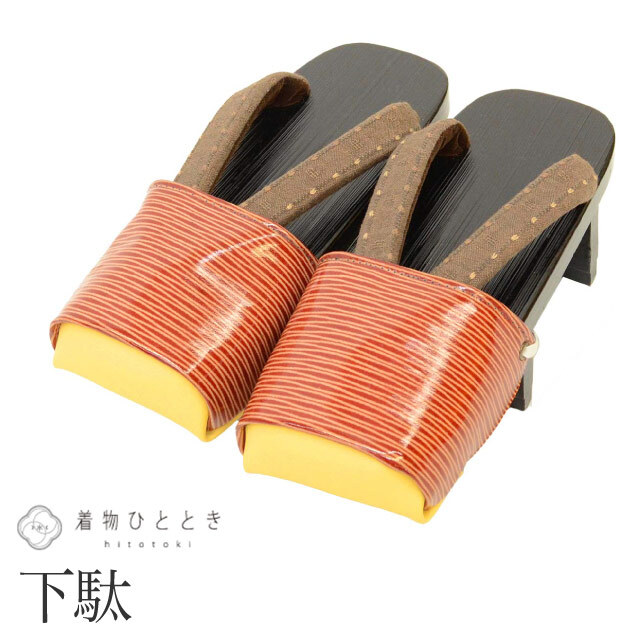 - 下駄 23.0cm リサイクル下駄 木製 未使用品 絣文様 茶色系 浴衣 カジュアル 着物 レディース kkb3943b