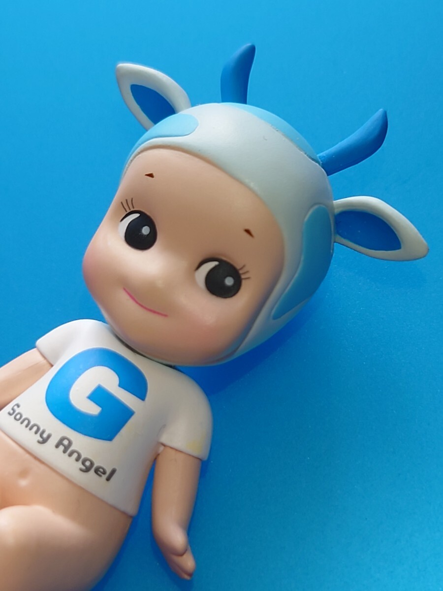 - ソニーエンジェル 11thアニバーサリーシリーズ2015年 (牛さん 文字:G)専用椅子付き 頭部右側に色欠けあり青色×水色