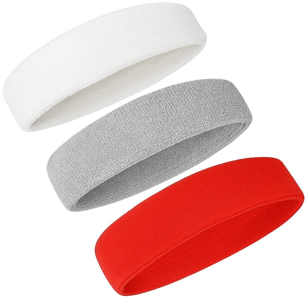 - ヘッドバンド ホワイト/グレー/レッド 各1個セット 汗止め スポーツ メンズ おしゃれ バスケ 汗 野球